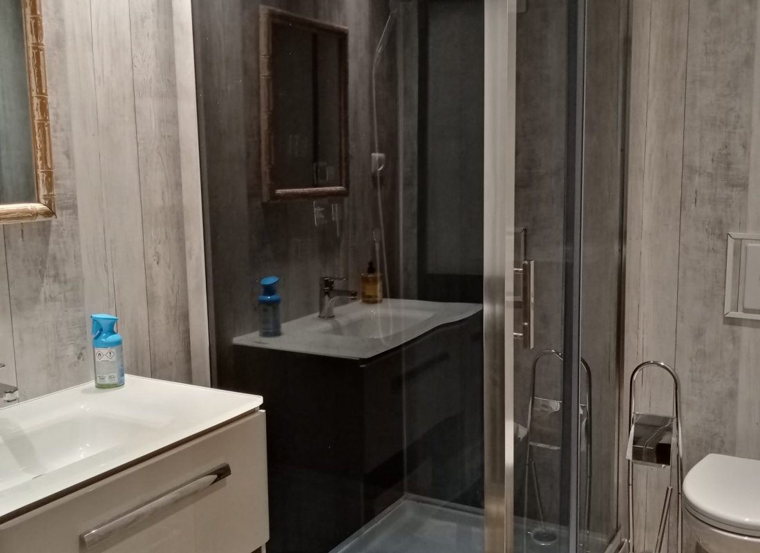 La salle d’eau et les toilettes sont privées, cabine de douche avec jets Hydro-massant.
